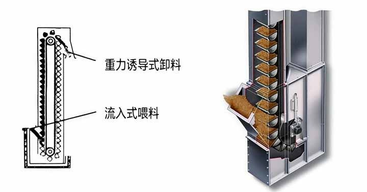 8.操作方便,維修少,易損件少。輸送鏈為套筒滾子鏈,誘導式重力卸料,用于各種粉狀、塊狀物料的垂直提升。